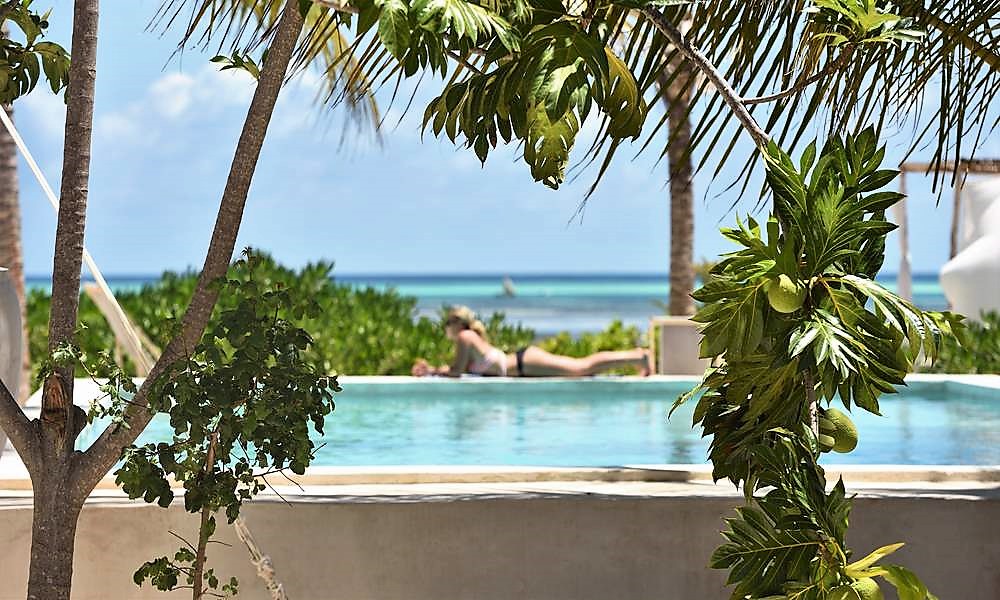 Das ganze Gebiet ist von üppiger tropischer Vegetation umgeben und blickt auf den ausgedehnten Indischen Ozean.