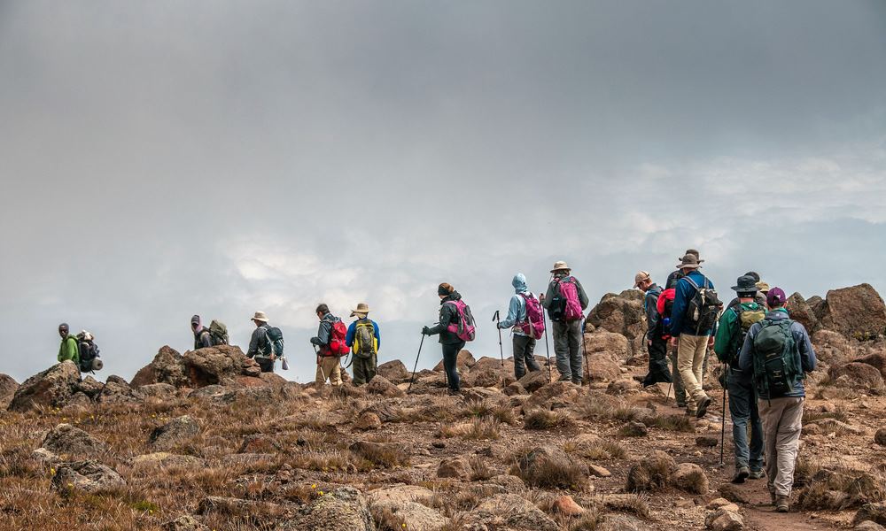 Wachen Sie auf mit heißem Tee und leckerem Frühstück, und wandern Sie weiter bis zu den letzten 600 Fuß zum Uhuru Gipfel (19.340 ft.). Steigen Sie die Mweka-Route zum Barafu Camp zum Mittagessen, dann fahren Sie weiter in Ihr Lager in dickem Heidekraut an den südlichen Abhängen.