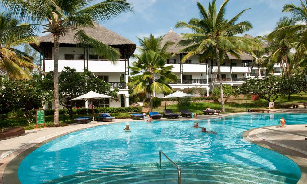 Die Hotelgebäude befinden sich in einem 10 Hektar großen, tropisch gepflegten Garten mit 145 Zimmern, drei Restaurants, drei Bars, einer Unterhaltungslounge und einem Pool und bilden damit eines der umfangreichsten All-Inclusive-Hotels in Kenia.