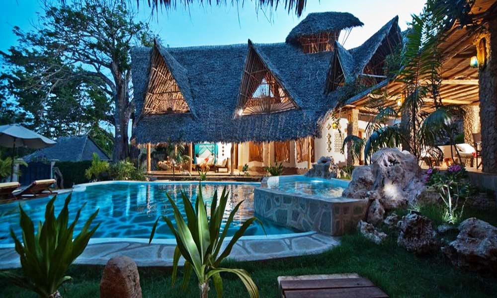 In einer zweieinhalb Meter langen Sicherheitsmauer auf 25 Hektar des schönsten Landes an der Südküste Kenias gelegen. Waterside Villa besteht aus vier sehr großen Schlafzimmern / Wohnzimmern, zwei Schlafzimmer haben sogar ihren eigenen privaten Jacuzzi. Alle sind en-suite. Jedes Schlafzimmer hat eine eigene Mini-Küche mit Kühlschrank und Tee- / Kaffeezubereitungsmöglichkeiten. Alle vier befinden sich in einem wunderschönen Designer-Pool mit Split-Level-Wasserfällen. Die Möbel sind von den berühmten Funzi Möbelwerkstätten in Tiwi und das Haus und das Interieur wurde persönlich von Sabine Funk von Funzi Designs entworfen. Private Stallungen für sechs Pferde sind in dem Gesamt-Design integriert und die erste von sechs par drei Golflöcher sind geeignet für gelehrte Golfer. Die Bereitstellung von Hubschrauberlandungen ist auch vorgesehen. Das Anwesen ist stark bewaldet und viele Vogelarten und Wildtiere sind in der Residenz. Es sind keine Hunde oder Katzen auf dem Gelände erlaubt.